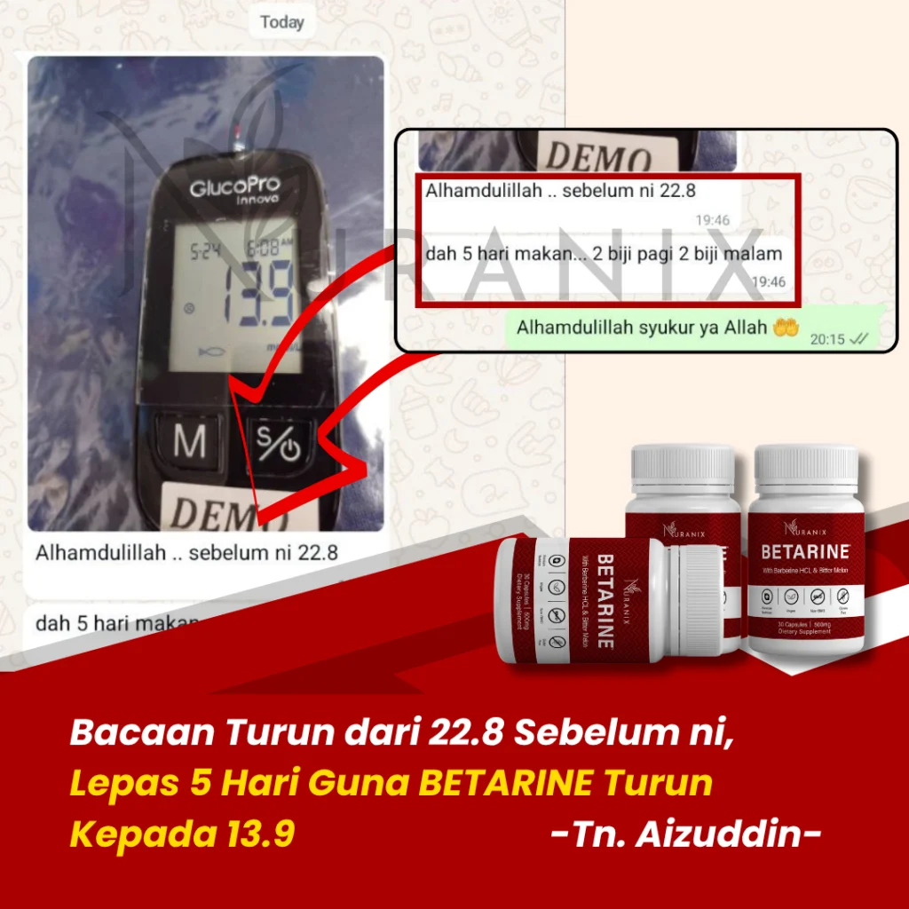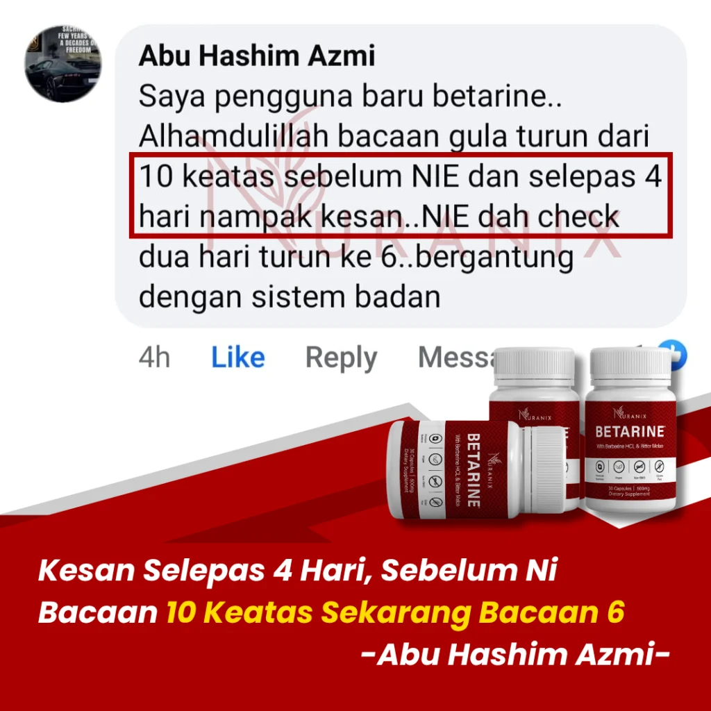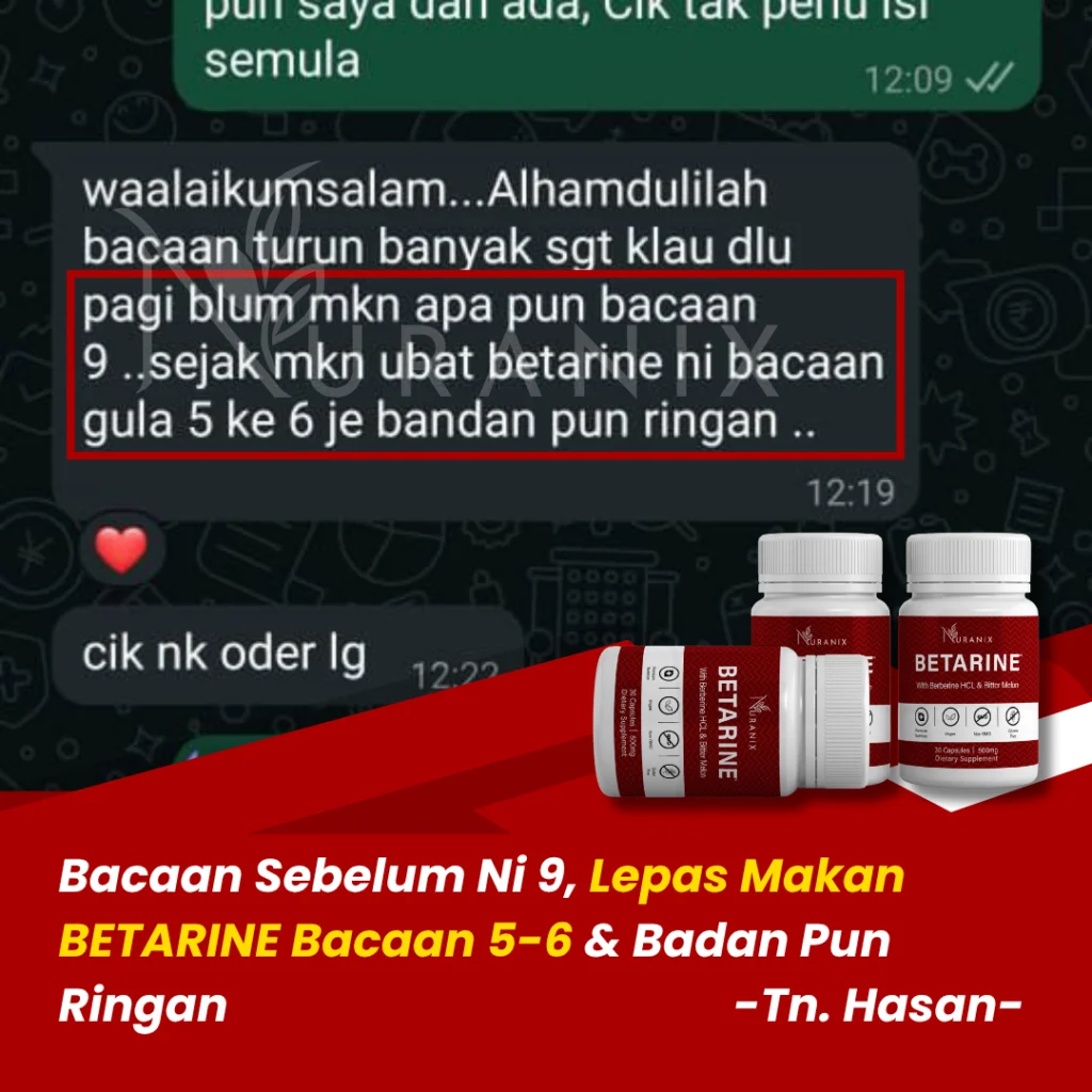Pulangan Wang Akan Diberikan Sekiranya Tiada Sebarang Perubahan Setelah 60 Hari Amalkan Betarine Nuranix Secara Konsisten & Amalkan Sekurang-Kurangnya 2 Biji Sehari.